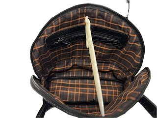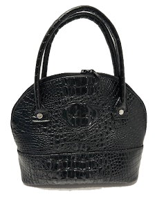 This bag is made from sturdy faux croc with rolled handles. The double top zipper closure opens up to a roomy inside cotton lining with a zippered pocket. The bag measures 8 1/2 wide x 10 1/2 tall x 4 deep.