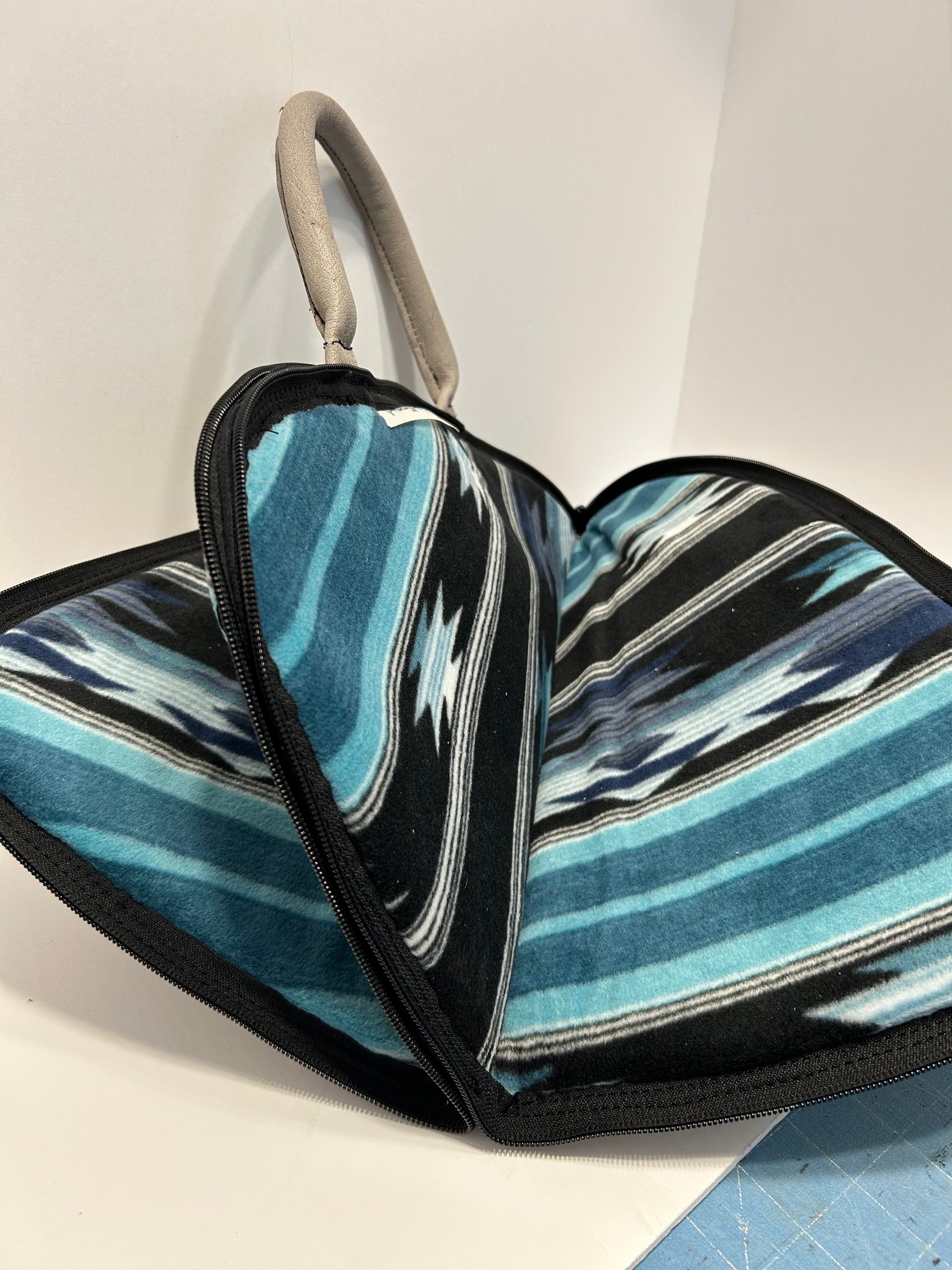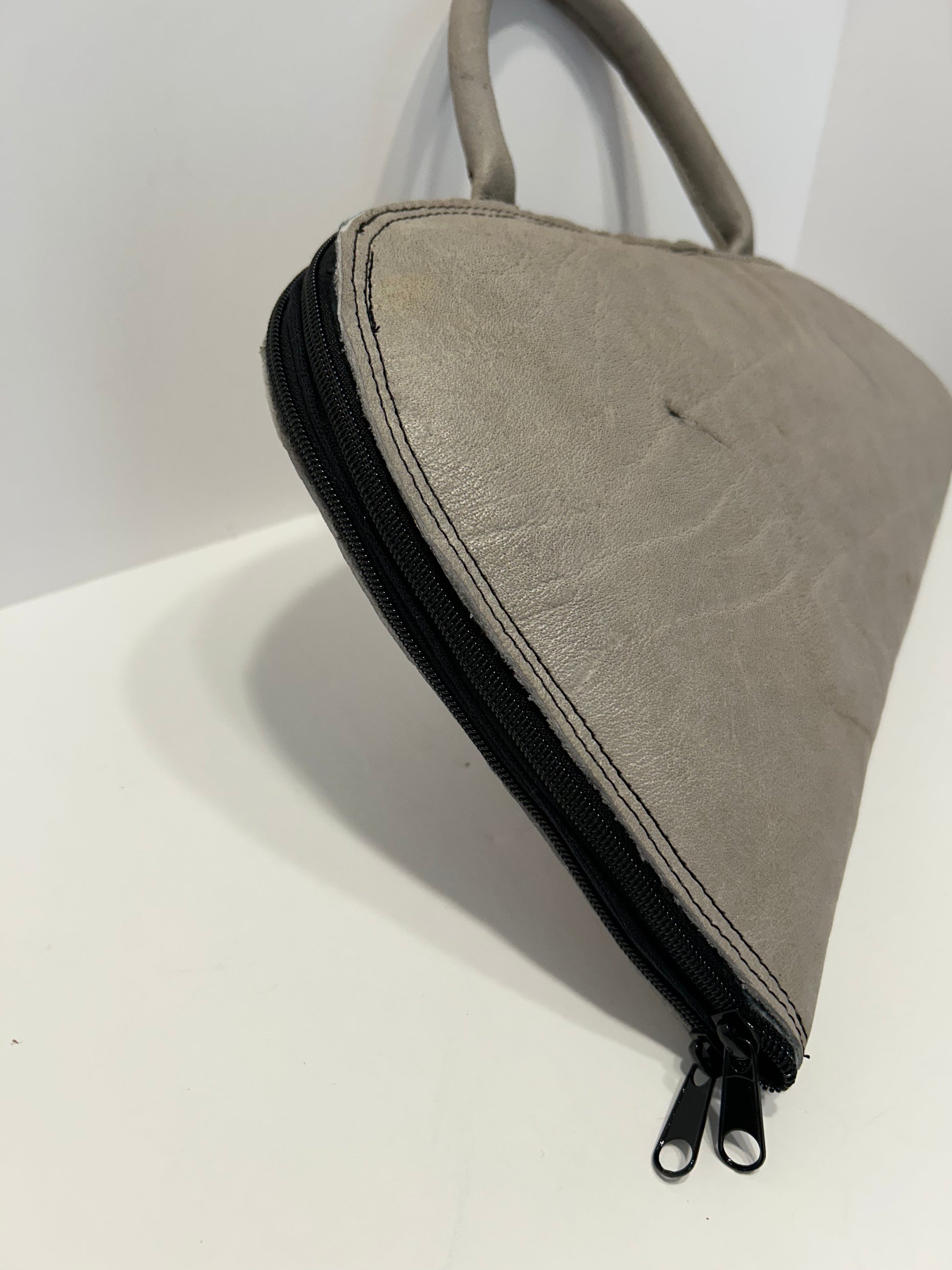 Grey leather double pistol case will hold up to an 8 inch barreled pistol. The inside fleece lining covers plush foam to cushion your firearms. The double zipper will keep everything secure. This case is real leather with a western type rolled rope handle.